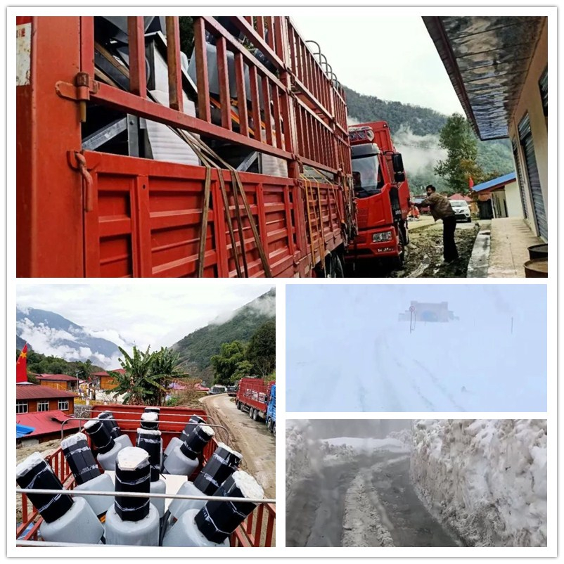 尊龙凯时肩负了墨脱县达木35千伏扩建工程、格当35千伏输变电工程5台35kVSF6断路器的生产制造使命。在产品运输途中,面临高海拔、极寒、天气多变、路况极差等卑劣情形,通往墨脱的最后一百公里旅程往往要走一天一夜。运输队路途中履历了暴雪、泥泞、结冰、无铺装等卑劣天气及重亨衢况。遇到雪崩的极端天气,运输车辆只能单行,遇到较窄的路口往往需要多次倒车调解偏向才华顺遂通行,路况欠好时,往往天天只能吃上一顿饭。就是在这种卑劣的条件下,运输队从3月8日启程,经由了8天的艰难前行,终于将产品清静运送到了墨脱达木、墨脱格当工程现场,为确保电站装备装置使命顺遂实验涤讪了基础。