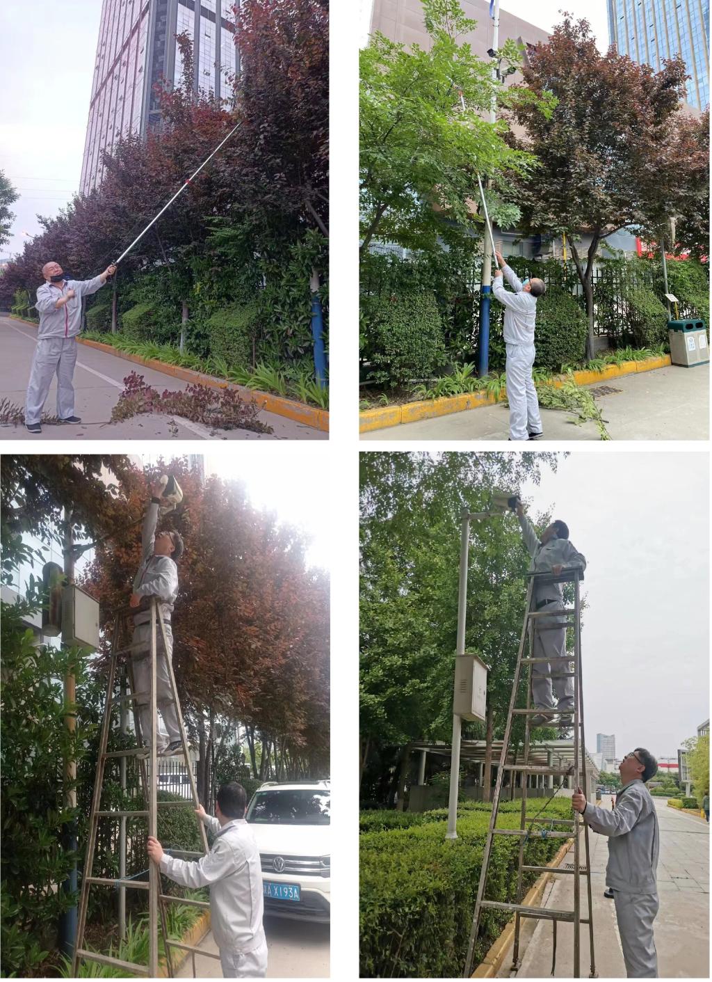 春天是植物生长兴旺的季节,部分行道树枝叶遮挡影响了智能视频监控装备正常事情。同时室外监控装备终年风吹雨淋,极大影响了监控头的清晰度,从而使摄像头影像模糊,造成辨识难题,甚至影响到监控装备的正常使用,为公司清静事情带来了较大的隐患。为进一步提高公司规模内摄像头视频信号的清晰度和监控规模不受影响,包管视频监控全天候在线,实时发明和掌握全厂视频信息,消除公司清静隐患。克日综合值班室值班职员对遮挡视频监控装备的枝叶举行修剪同时对摄像头举行了整理,确保摄像装备能够正常使用并施展主要作用。