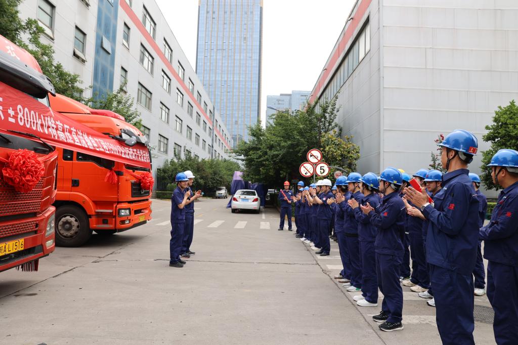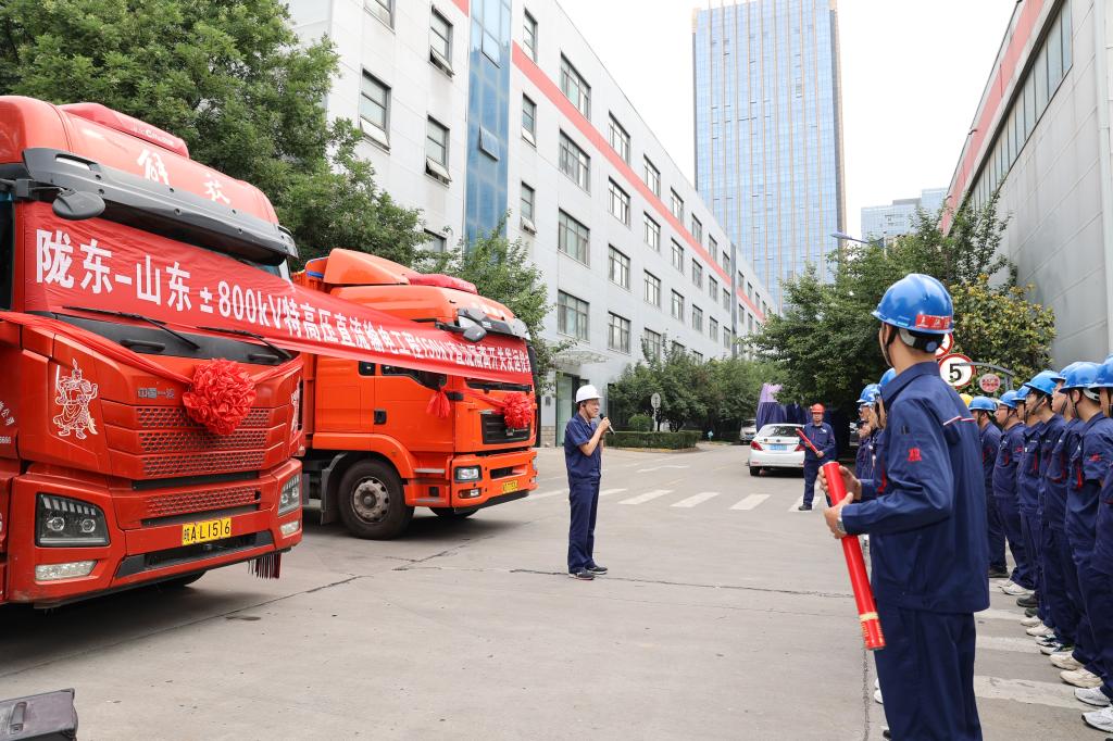 上午11:00,李强宣布启动令,宣布“陇东-山东±800kV特高压直流输电工程150kV直流隔脱离关正式发运”。陪同着阵阵礼花,满载着产品的车辆徐徐驶出公司大门发往用户现场,为国网特高压工程建设注入西电实力。